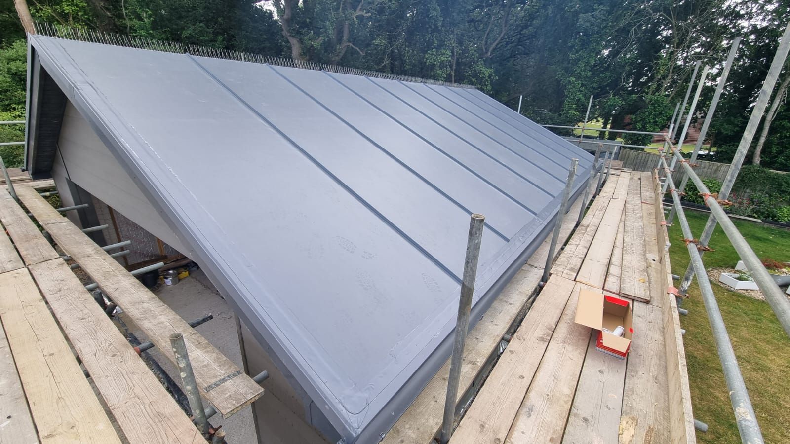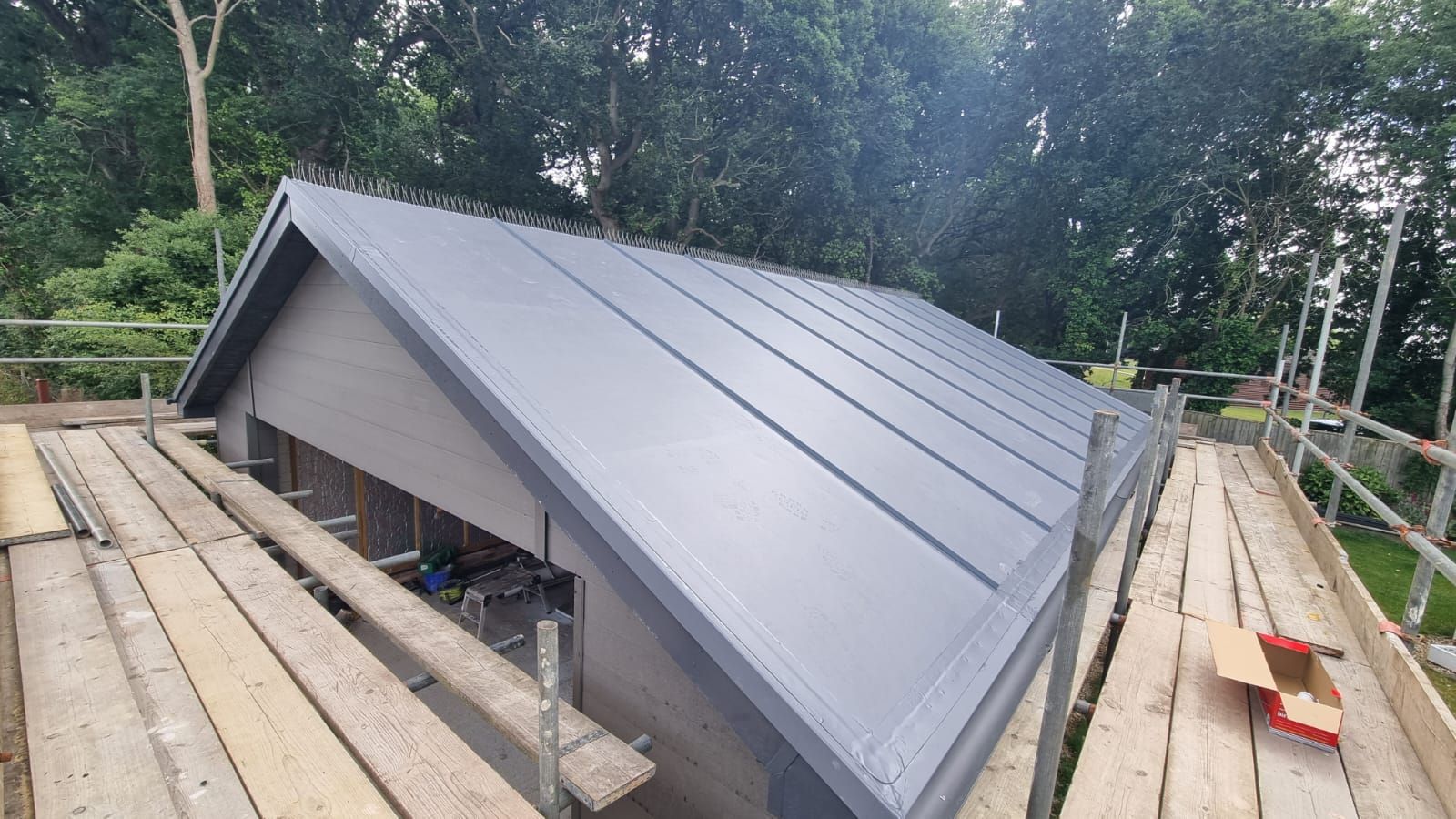 In addition to the standard roofing installation, we added a unique touch by fitting mock zinc bars to the garage roof. These mock zinc bars not only enhance the garage's appearance but also give it a distinct character. To further protect the roof and prevent birds from perching on it, we installed bird spikes along the ridge, ensuring the longevity and cleanliness of the roofing system.